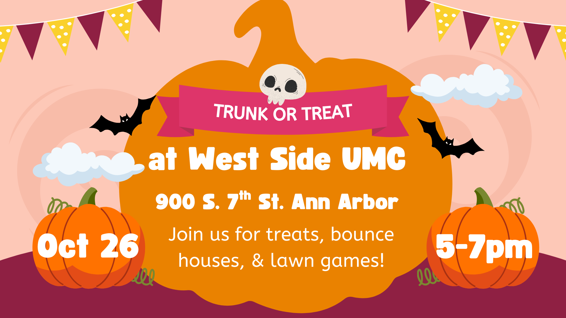 West Side’s annual Trunk or Treat is back! Join us October 26th from 5-7pm for bounce houses, lawn games, and of course, candy!